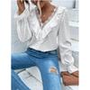 Spring New Elegant Lace Splicing Jacquard Shirt Long Sleeved White Sweet Women Blouse Ruffled Loose Tops Fashion Dots Simple Clothing