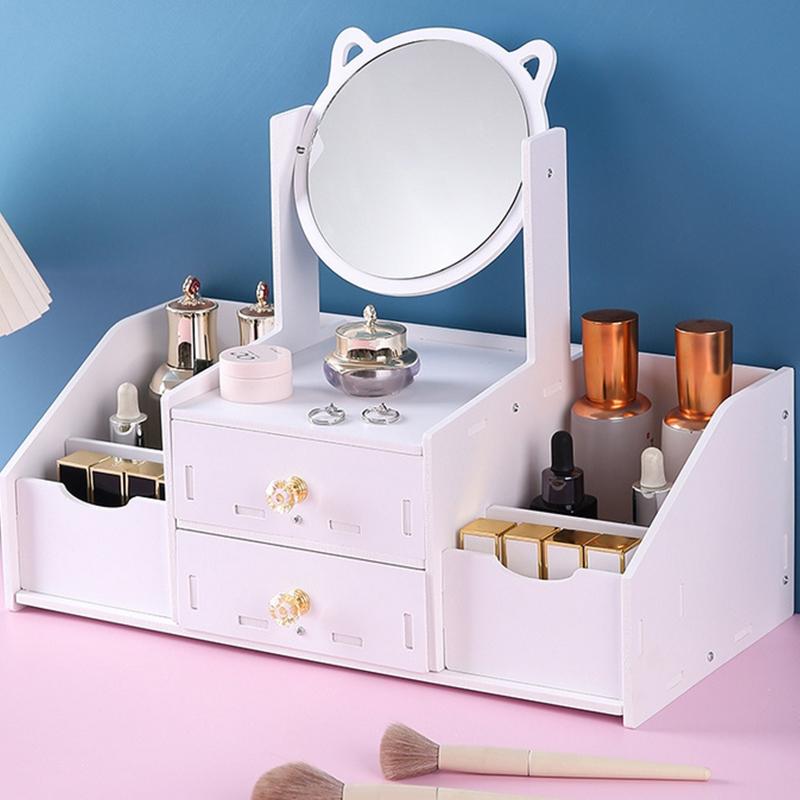 Assembly Makeup Mini Table Multifunctional Cosmetics Storage Rack With Rotating Mirror Skin Care Products Organizer Drawer Shelf