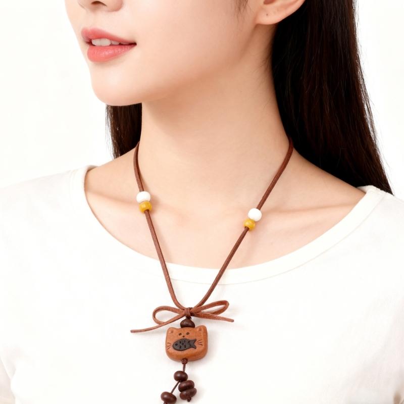 Einzigartiger Zugband Kaffeebohnen-Bären-Anhänger an verstellbarer Halskette im Retro-Stil
