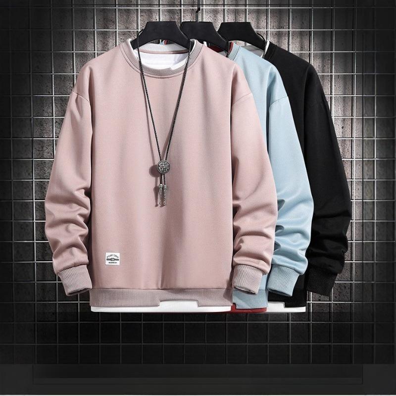 Mens Casual Sweatshirts Hoodie Men Fake Two Pieces Multi Color O-Neck Fashion Sweatshirt