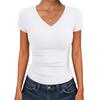 Damen Slim-Fit V-Ausschnitt Kurzarm T-Shirt Top