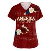 Damen Kurzarm Unabhängigkeitstag Aufdruck V-Ausschnitt Tasche Arbeitskleidung Oberteil