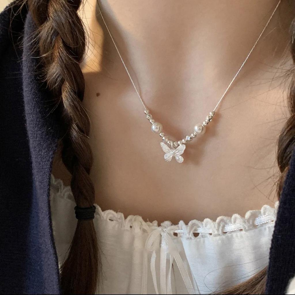 Schmetterling Perlenimitat Halskette Damen Ins leichter Luxus Nischen Design High-End Einfach und vielseitig Klein frisch Geschenk