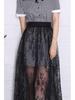 2025 Autumn/Winter French Retro Lace High-Waisted See-Through Slimming Loose Midi Skirt for Women