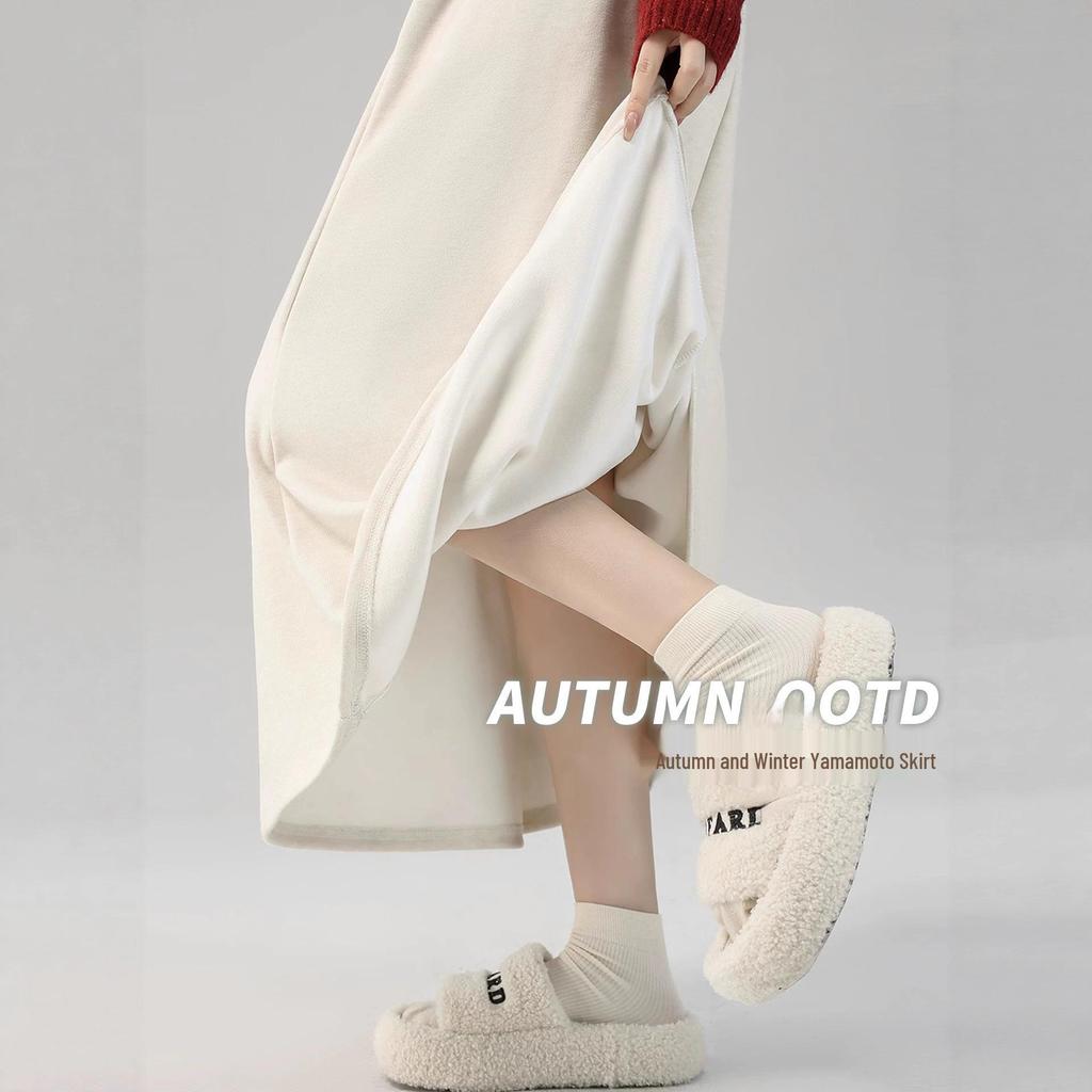 Off-White High Waist Glutinous Rice A-Line Skirt for Women - Slim, Flattering, Mid-Length, Yamamoto Style, Spring/Autumn/Winter 2025