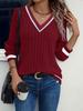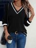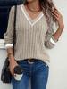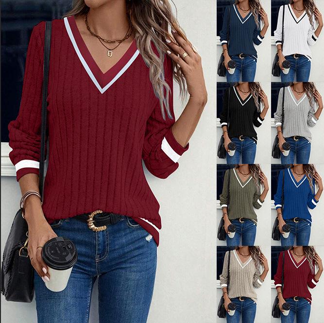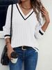 Wir stellen eine stilvolle Ergänzung für Ihre Garderobe vor: Dieses lässige Damen-Oberteil mit V-Ausschnitt, Patchwork-Design und langen Ärmeln ist perfekt für Frühling und Herbst.. Hergestellt aus einer Mischung aus Polyester und Baumwolle, verspricht es eine bequeme und atmungsaktive Passform.. Das durchgängige Muster verleiht einen Hauch von Eleganz, während die langen Ärmel und der V-Ausschnitt einen vielseitigen Look schaffen, der für jeden lässigen Anlass geeignet ist.. Egal, ob Sie sich für einen Ausflug schick machen oder es zu Hause lässig halten, dieses Oberteil ist eine schicke und praktische Wahl.