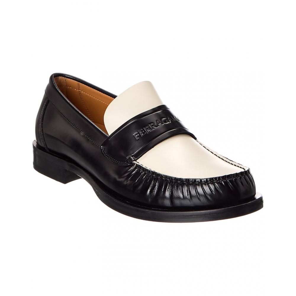 The Salvatore Ferragamo Fillmore Leather Loafer is a premium black leather loafer made in Italy, showcasing a sophisticated design and excellent comfort. Featuring an embossed logo, a smooth leather sole, and a lightly padded leather insole, this loafer adds an elegant touch to any outfit. The 1-inch heel enhances your look with a subtle lift. Please note that size selections are in UK sizes; refer to the size chart for US conversions. Sizing options include D for narrow, EE for standard, EEE for wide, and M for medium.