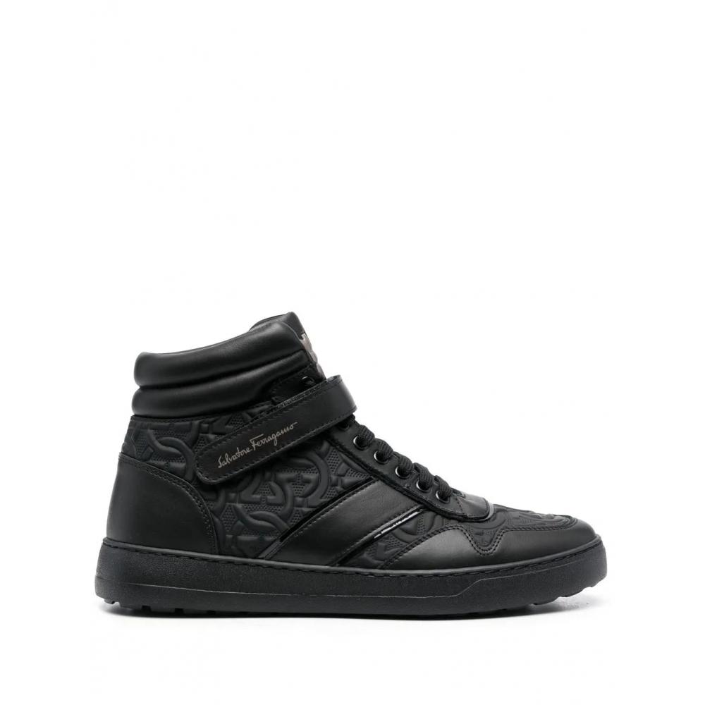The "Salvatore Ferragamo Sneaker Alta" features a sophisticated black design, made with 100% CMS material for the upper, ensuring durability and comfort.