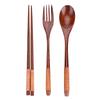 Wooden Chopsticks Spoon Fork Tableware Dinnerware 3pcs Set (with black thread)