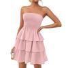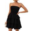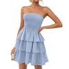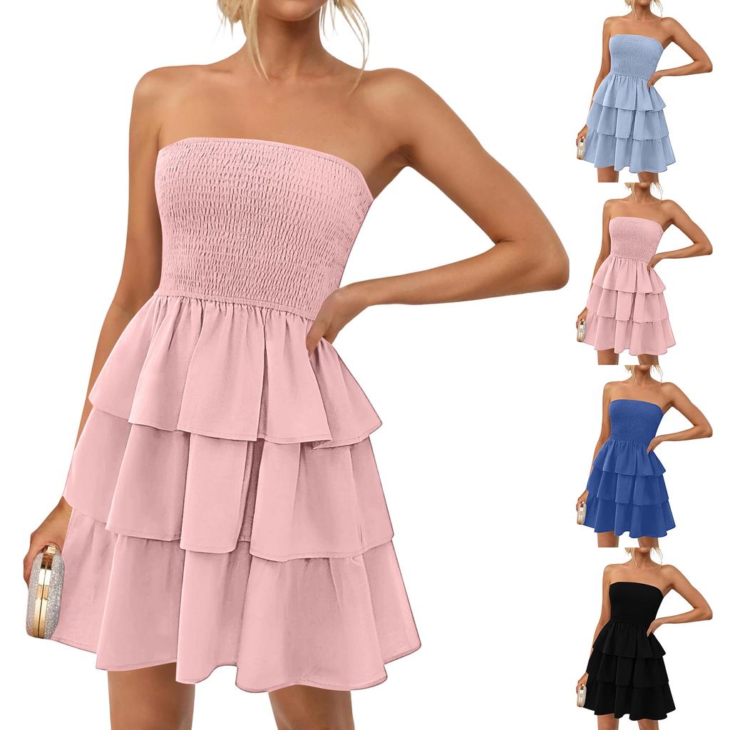 Damen Farb Sommer Trägerlos Schulterfrei Freizeitkleid