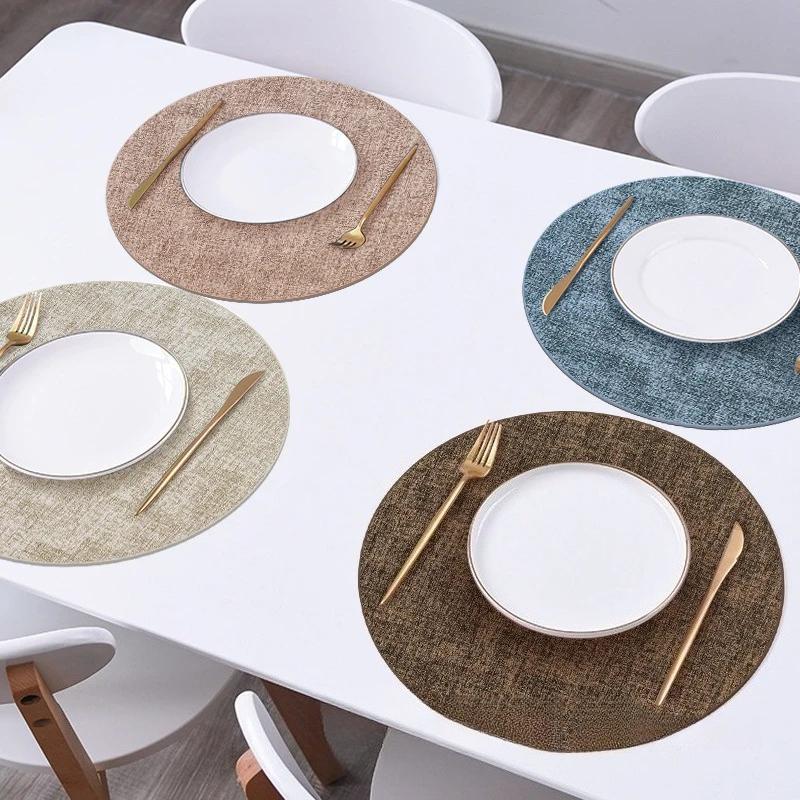Round Placemats Set of 4 with 4 coasters for Dining Table Heat-Resistant Non-Slip Washable Waterproof Coffee Mats,Place Mats