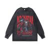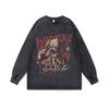 Dark Cartoon Digital Direct Injection Printing Washed Long-Sleeved T-Shirt For Men And Women American Retro Crew Neck Sweater