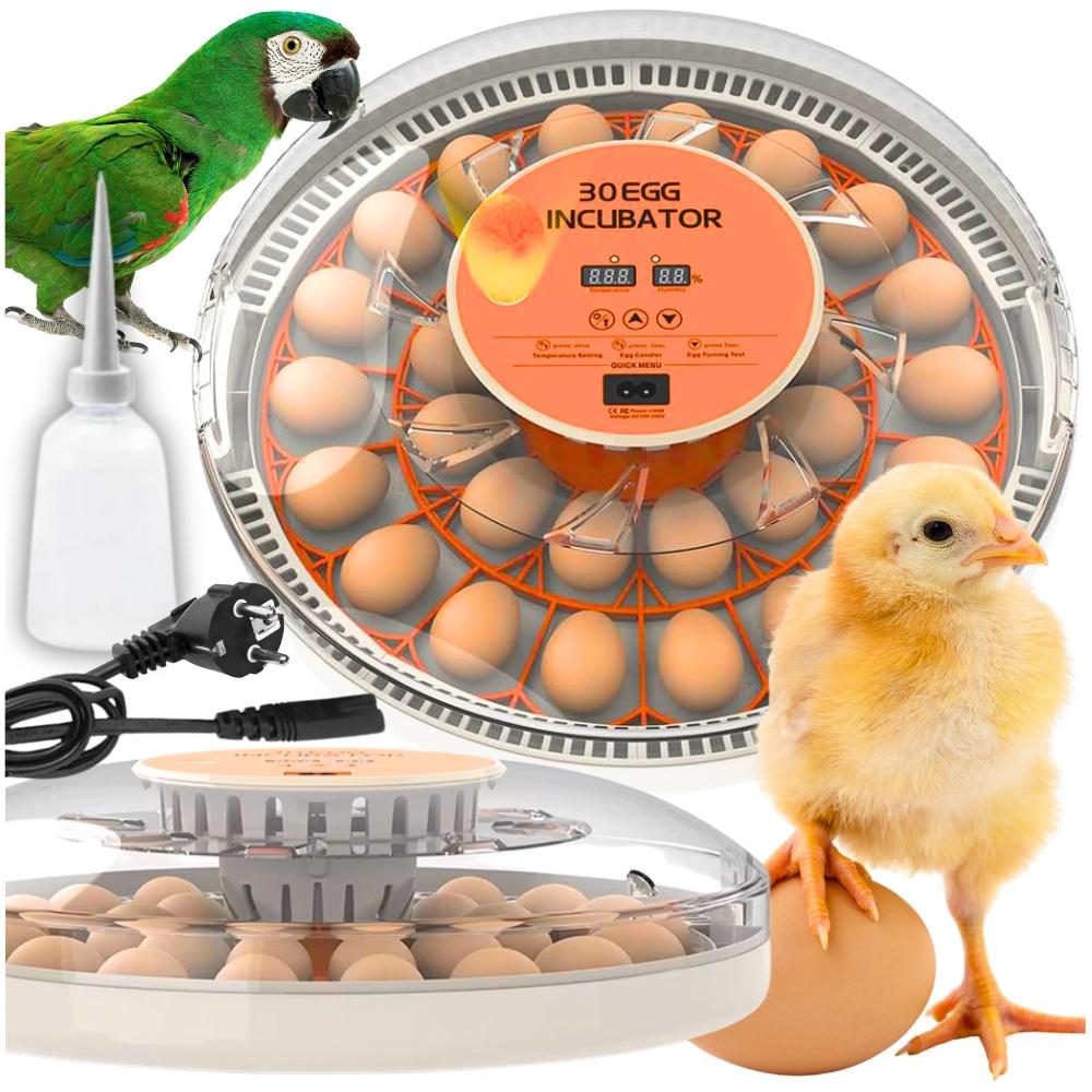 INCUBATOR POULTRY HATCHERY HATCHER WAXSCOPIC AUTOMATIC EGG TURNING MACHINE 30 EGGS - INTELLIGENT SUPPORT FOR BREEDING Are you dreaming of accurate and easy egg incubation process at home? Do you want to have full control over the hatching process to ensure the best conditions for embryos? Discover an incubator that combines the convenience of automatic egg turning and ovoscoping, offering you peace of mind and incubation success! AUTOMATIC EGG TURNING EVERY 2 HOURS – INCREASE YOUR HATCHING RATE! The incubator automatically turns eggs every 2 hours, ensuring even heat distribution and embryo development . Regular turning of eggs prevents them from sticking to the shell. Thanks to this mechanism, the eggs are better prepared for hatching , which translates into a higher success rate in the incubation process. PRECISE TEMPERATURE AND HUMIDITY CONTROL – ACCORDING TO YOUR NEEDS The incubator is equipped with advanced temperature control system and displays humidity levels, , ensuring ideal conditions for effective incubation. Thanks to the easy ability to adjust parameters, you can precisely adjust the settings to your needs to achieve the best possible result. This is a perfect solution for people who want to have full control over the incubation process, eliminating the risk of unwanted changes in temperature or humidity. MAINTAIN HUMIDITY WITHOUT OPENING THE LID – EASY AND SAFE HUMIDIFICATION You control the humidity level in the hatching chamber easily and conveniently – just add water to a special trough through dedicated opening, without having to open the incubator lid. Thanks to this you avoid heat loss and maintain stable incubation conditions. Detailed refilling instructions are described in the instruction manual included with the kit. BUILT-IN OVOSCOPIC – OBSERVE EMBRYO DEVELOPMENT! The incubator is equipped with a built-in LED ovoscope , which allows you to easily and regularly monitor the condition of the eggs and embryo development. Thanks to this feature, you can ongoing checks whether the incubation process is progressing correctly without having to purchase additional devices or lights. The ovoscope provides convenient and safe observation of embryos, which minimizes the risk of unnecessary disruptions to incubation. HOW TO PREPARE EGGS FOR INCUBATION? Choose only fresh, fertilized eggs – it is best to incubate them within 4–7 days after laying . Avoid washing eggs with water, as this can damage their natural protection. Furthermore, do not store eggs in the refrigerator , as low temperatures can impair embryo development. To ensure proper development of the chicks, place eggs in the incubator with the pointy end down . This position supports proper embryo development and increases the chances of successful hatching. SAFE INCUBATOR OPERATION During the incubation process try to open the incubator lid as little as possible - frequent removal may disrupt stable temperature and humidity conditions, which are crucial for embryo development. If the ambient temperature is too low, consider placing it in a perfectly fitted thermal protection - Styrofoam (included with the incubator) which will help maintain optimal conditions. SMART DISPLAY IN THE CONTROL PANEL Heating indicator Temperature display Settings indicator Humidity display Ovoscope WHAT DOES THE INCUBATOR CONSIST OF? Control panel Rotating shaft Water tank cover Automatic egg tray Water tank Base Vent/water filling hole EMBRYO DEVELOPMENT MONITORING – 3 KEY STAGES To track the progress of incubation, monitor embryo development at key moments: Day 5–6 : check fertilization – remove infertile eggs, those with loose yolk, or a dead embryo. Day 11–12 : assess development – embryos should be large, with visible blood vessels and a large air cell. Day 16–17 : aim the egg at the ovoscope – a well-developed egg will be dark, with a distinct air cell. Dead embryos have blurred vessels and indistinct boundaries. HATCHING AND MAINTENANCE OF THE DEVICE In the final phase of incubation (days 19–21) increase humidity and slightly lower the temperature to 37–37.5°C – this is crucial for proper penetration of the shell by the chicks. During the final phase of incubation – just before the chicks hatch – , both the egg tray and the turner mechanism should be removed from the incubator. This gives the newly hatched chicks more space and is not at risk of injury from the turner movement. It is best to remove these components approximately 2-3 days before the planned end of incubation. After hatching, thoroughly clean and dry the incubator. Regular maintenance will not only extend the life of your device, but will also protect the electronics from damage. TECHNICAL SPECIFICATIONS capacity: up to 30 eggs (chicken, duck, goose, turkey, quail, pigeon, etc.) automatic turning: every 2 hours temperature range: 20 – 39.5°C power: 50 W dimensions: 40 x 40 x 9 cm humidity: controlled by the water hole display: temperature, humidity LED ovoscope: built-in, cold light material: durable plastic included: incubator, built-in ovoscope, cable, user manual, practical water dispenser, polystyrene protective thermal insulation brand: BECKE The BECKE brand is a valued supplier of innovative solutions in the field of storage as well as tools and accessories for both home and industrial use. Our diverse offering includes the highest quality products that effectively support organization, storage, and the performance of various technical and implementation tasks.