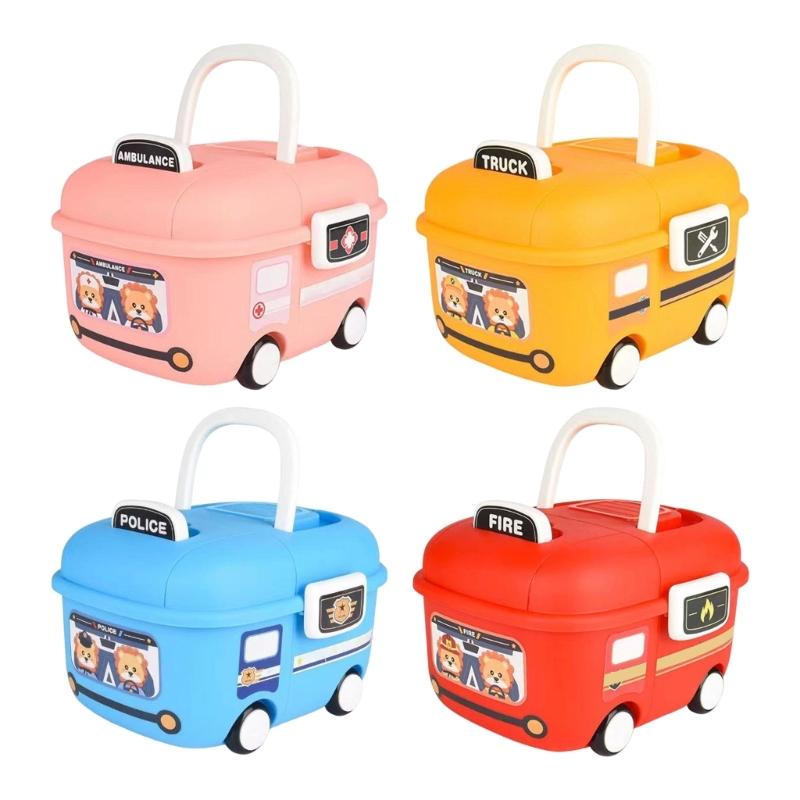 Entzückende Cartoon-Auto-förmige Kinderaufbewahrungsbox kombiniert elegante Designs mit einem stabilen Vierpunktfuß und leichtgängigen Rollen und verwandelt die Spielzeugorganisation in fantasievolle Spielzeiten, während sie Umkippunfälle verhindert.