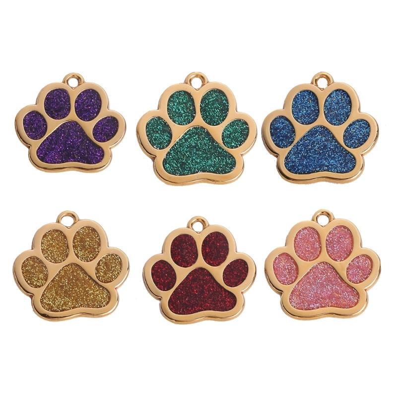 Haustierhalsband Blingbling Anhänger für Hunde Katzen Tierpfotenabdruck Anhänger mit Glitzer Mehrfarbig