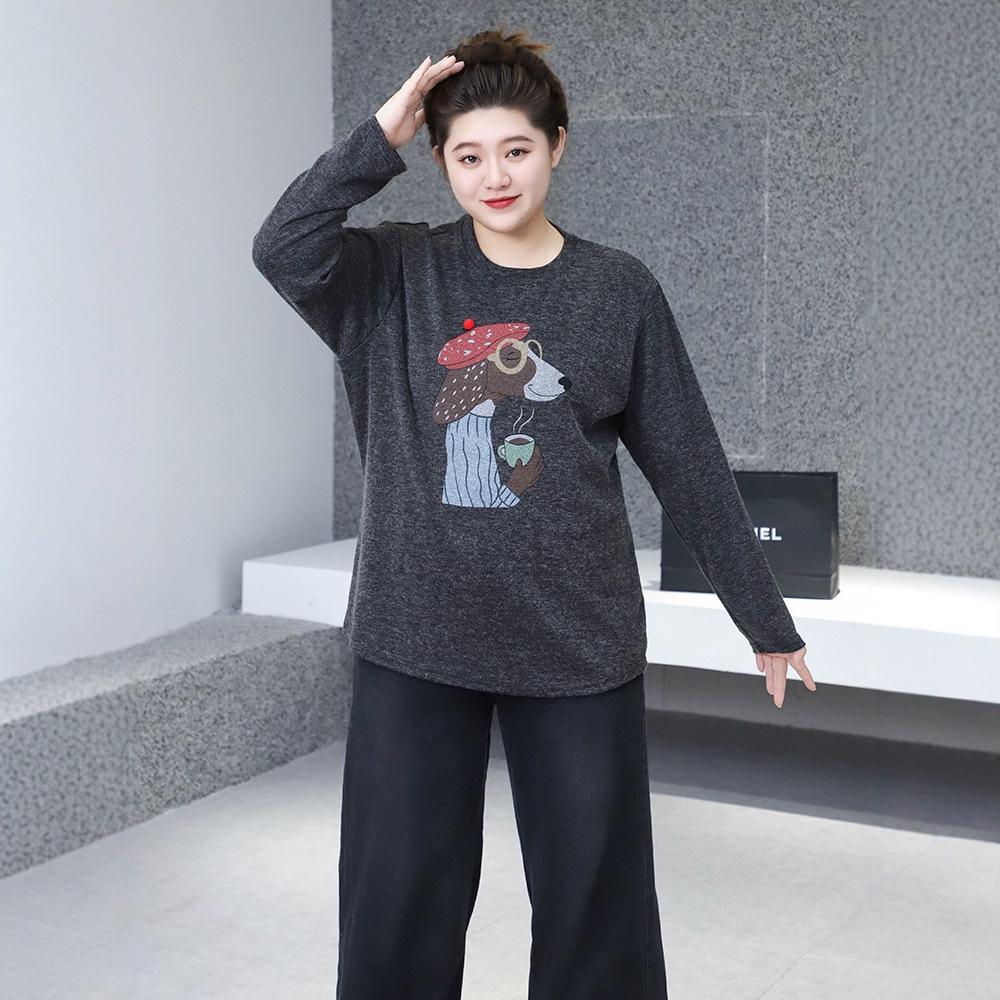 Stay cozy and stylish this winter with this Korean-inspired loose casual pullover, featuring a playful puppy print. Crafted from soft knitted fabrics and durable polyester, this top promises warmth and comfort. Its design includes a round neckline and long sleeves, making it an ideal choice for plus-size women seeking a casual yet chic look. Perfect for any casual outing or a cozy day at home, this pullover effortlessly combines fashion with functionality.