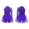 Mädchen Tanzauftrittskostüm Glitzernde Pailletten Mieder Tüllrock-Leotard Ausgeschnittene Taille Asymmetrischer Jumpsuit