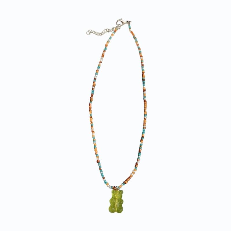 Korean Multicolored Bear Pendant Necklace Bohemia Love-heart Ornament Collar Chain Rice Beaded Choker Chain for Girls