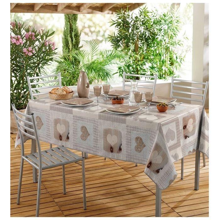 Nappe rectangulaire - EDEN - Cosy coeur - Patchwork cœurs - 140x240 cm - Beige/Taupe/Crème