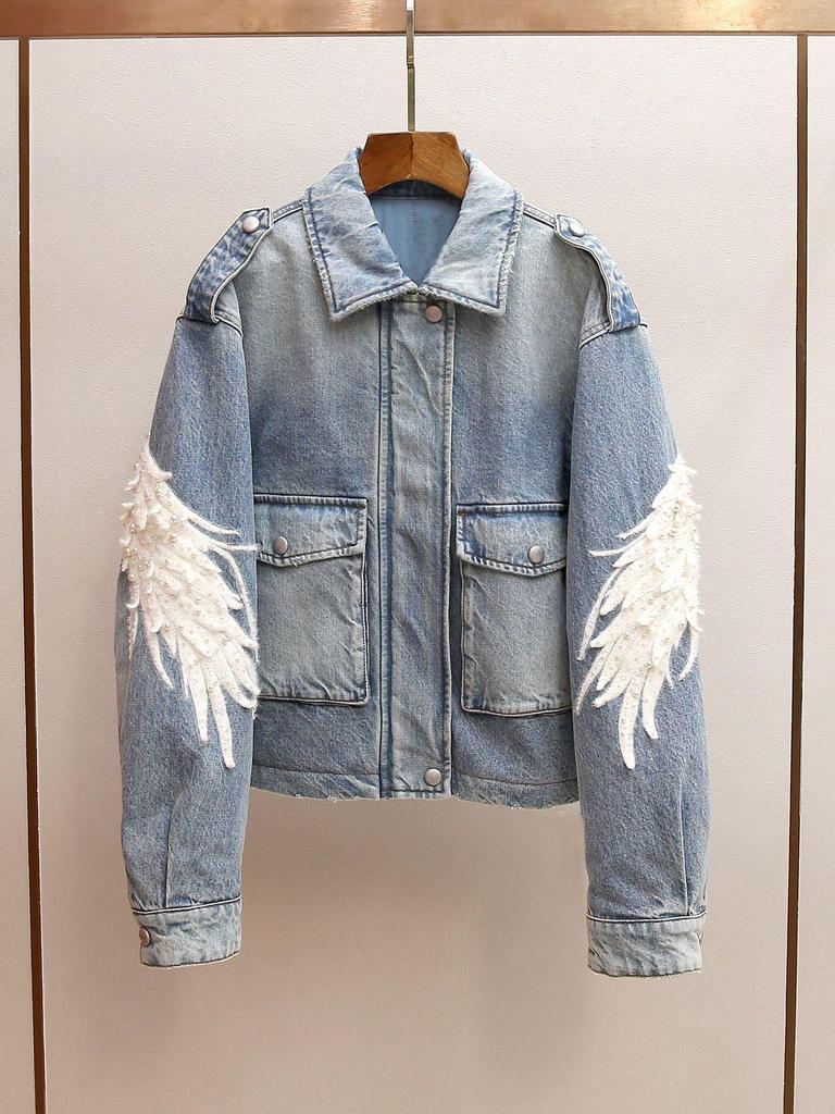 Denimjacke im koreanischen Stil mit Perlenkragen - Winter-Baumwollmantel für Damen