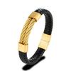 Punk Men Jewelry Non-fading Steel Wire Rope Leather Bracelet Vintage Cuff Charm Bracelet for Men Jewelry Street Gifts