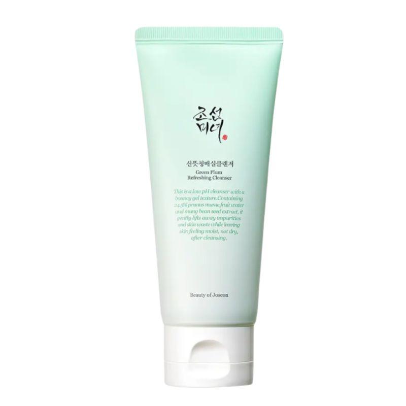 Beauty of Joseon Green Plum Refreshing Cleanser is a gentle gel cleanser designed to remove impurities while maintaining the skin’s natural moisture balance. The formula contains Prunus Mume (Green Plum) Fruit Extract (24%) and mung bean seed extract, helping to cleanse pores and refresh the skin without causing dryness. Its mild, slightly acidic formula supports healthy skin balance while leaving the skin feeling soft and refreshed. Suitable for daily use on most skin types.