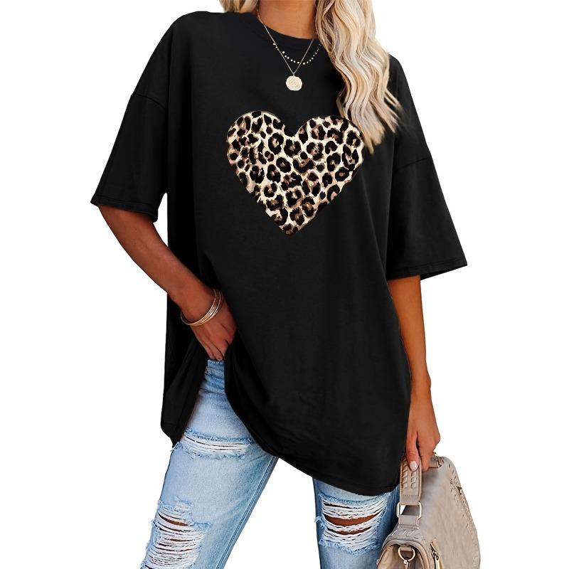 Womens Plus Size Valentine's Day Print T Shirt Oversized Round Neck Short Sleeve Summer Spring Casual Top