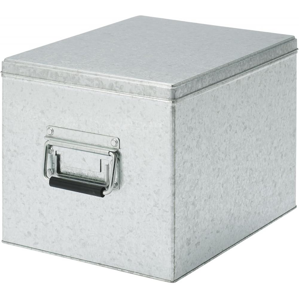 Die MUJI verzinkte Bügelbox aus Eisen ist eine große Aufbewahrungsbox aus robustem verzinktem Eisen.. Es ist für eine gute Sichtbarkeit des Inhalts von außen konzipiert und kann ohne Verrutschen gestapelt werden.. Das Design ermöglicht eine maximale Nutzung des Stauraums.