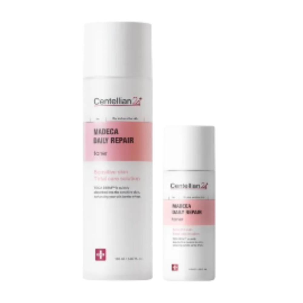 Strengthen and soothe your skin with the Centellian24 Madeca Daily Repair Toner Set. Formulated with Centella Asiatica-derived Madeca ingredients, this gentle toner helps calm irritated skin, reinforce the skin barrier, and deliver long-lasting hydration. The lightweight watery texture absorbs quickly, leaving the skin refreshed, balanced, and prepared for the next skincare steps. This special set includes a convenient 50ml mini size for travel or on-the-go use.