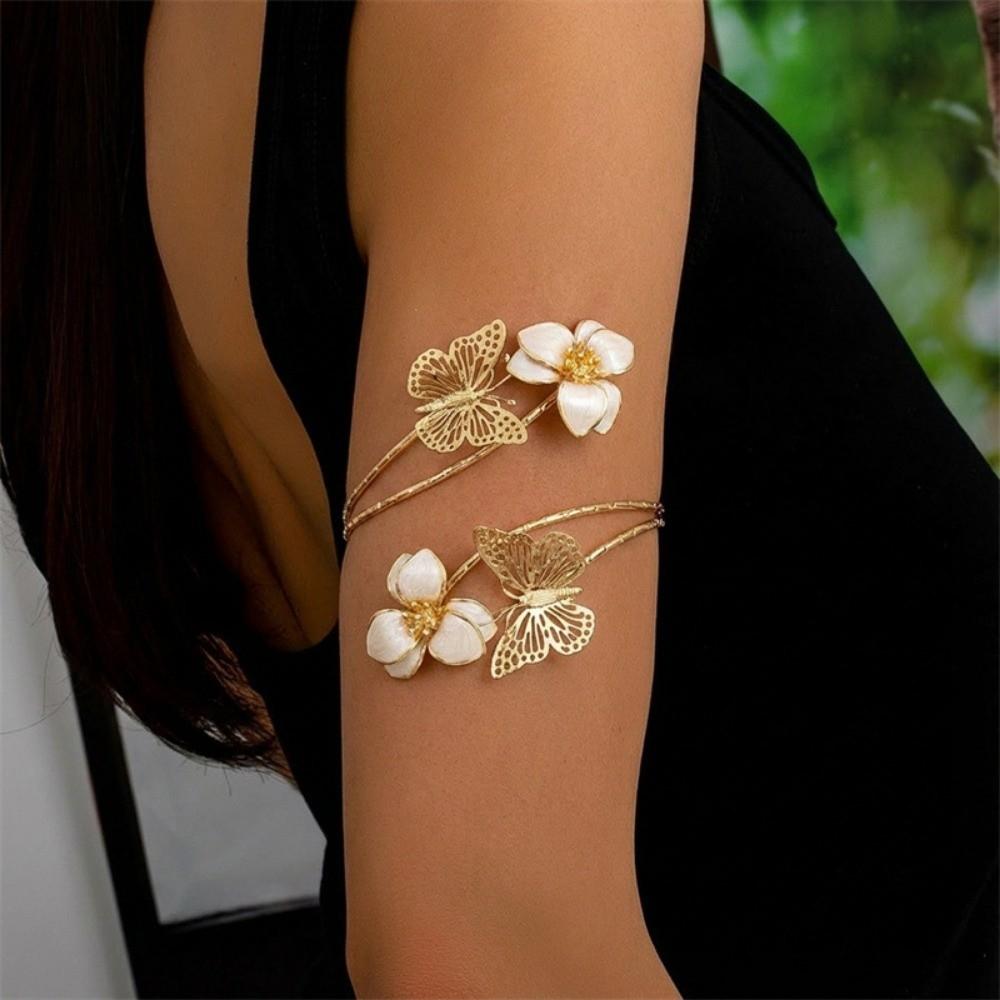 Gold Color Floral Open Cuff Armlet Metal Flower Cuff Arm Ring New Spiral Arm Bracelet Women