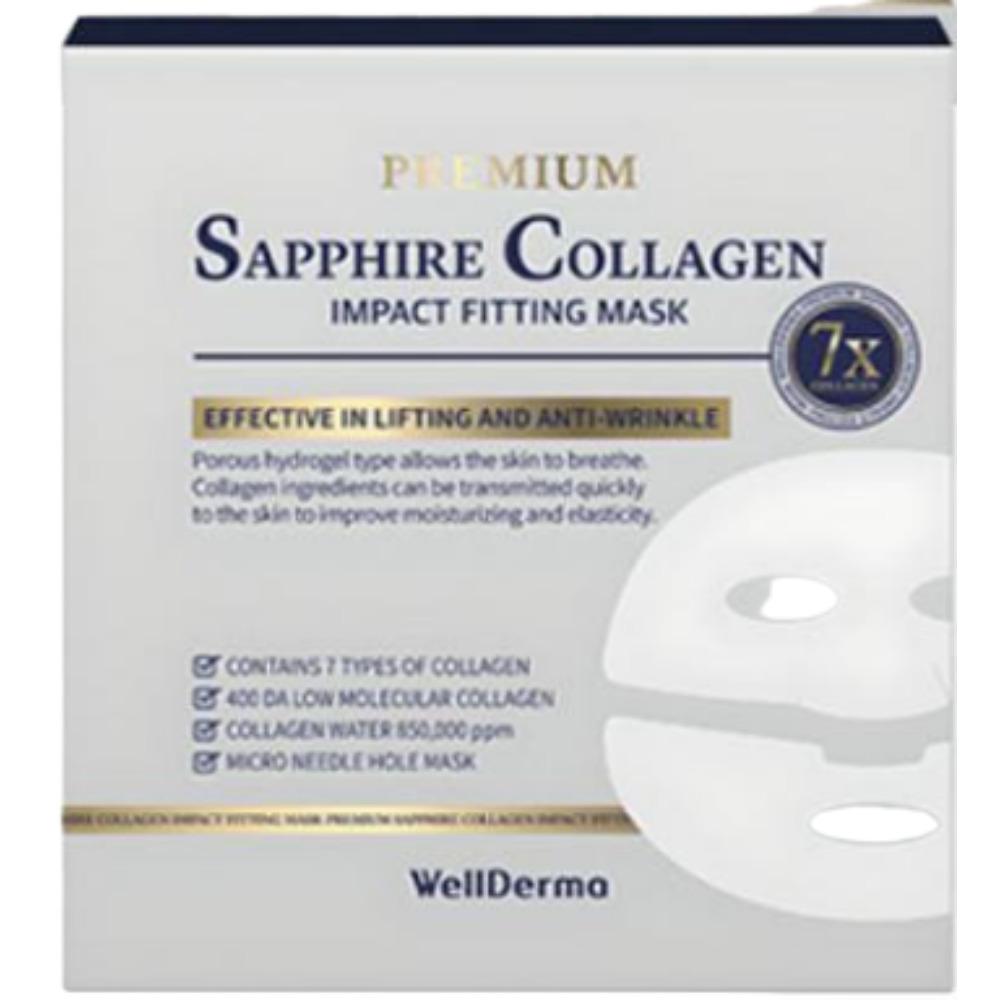 Wellderma Premium Sapphire Collagen Impact Fitting Mask helps deliver hydration and nourishment to the skin.