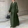 ZANZEA Damen Casual Umlegekragen Kurzarm Lose Langes Kleid