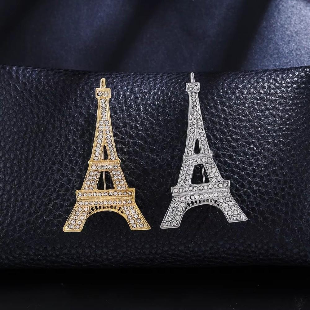 Vergoldete/Versilberte Eiffelturm Brosche Strass Brosche Kleidung Dekorative Schmuck Accessoires