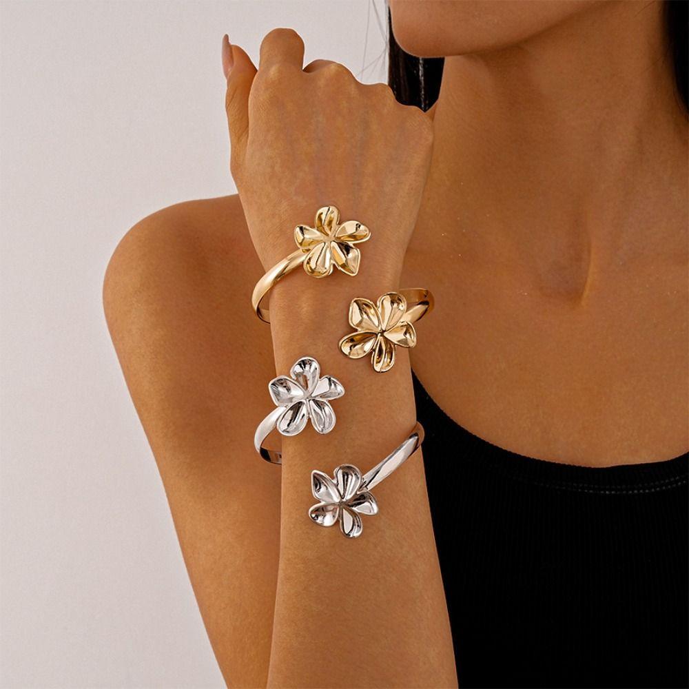 Metall-Blumen-Manschettenarmband Emaille-Glasur Handwerk Spiral-Armband Floral Offene Manschette Armreif Damen