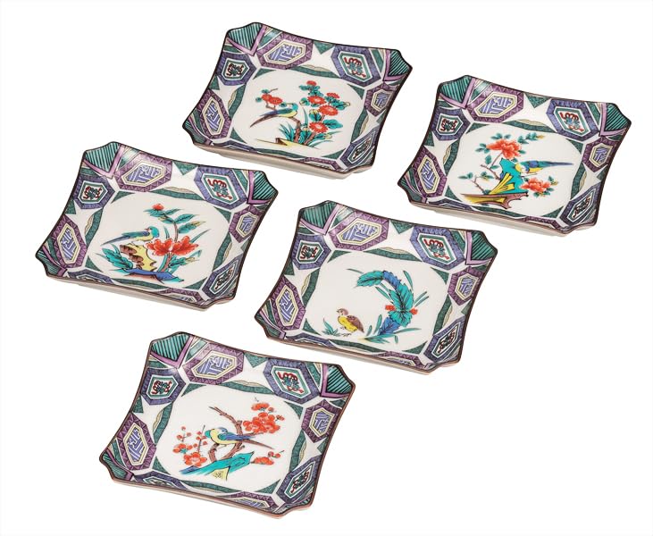 Kutani-Geschirr Iwataya 4,2 Zoll Teller Set, altes Kutani Blumen- und Vogeldesign K9-136