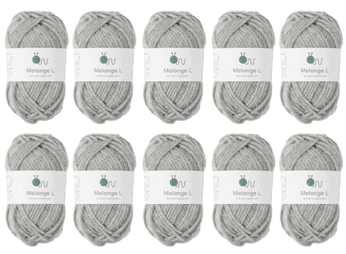 Knitworm Melange Garn, 10 Knäuel, Extra Dick, 30g (45m), 60% Wolle, 40% Acryl (Grau)