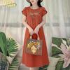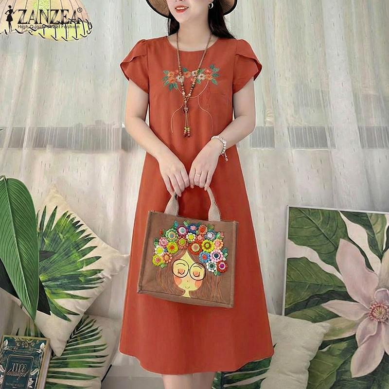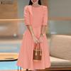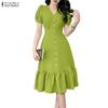 ZANZEA Women Casual Round Neck Short Sleeve Print Dress