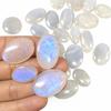 Each cabochon is carefully cut and polished into a smooth oval shape with a domed top and flat back, making it perfect for a variety of jewelry designs such as rings, pendants, earrings, necklaces, and wire wrapping projects. The elegant white base combined with flashes of blue and rainbow colors makes every stone unique and eye-catching.