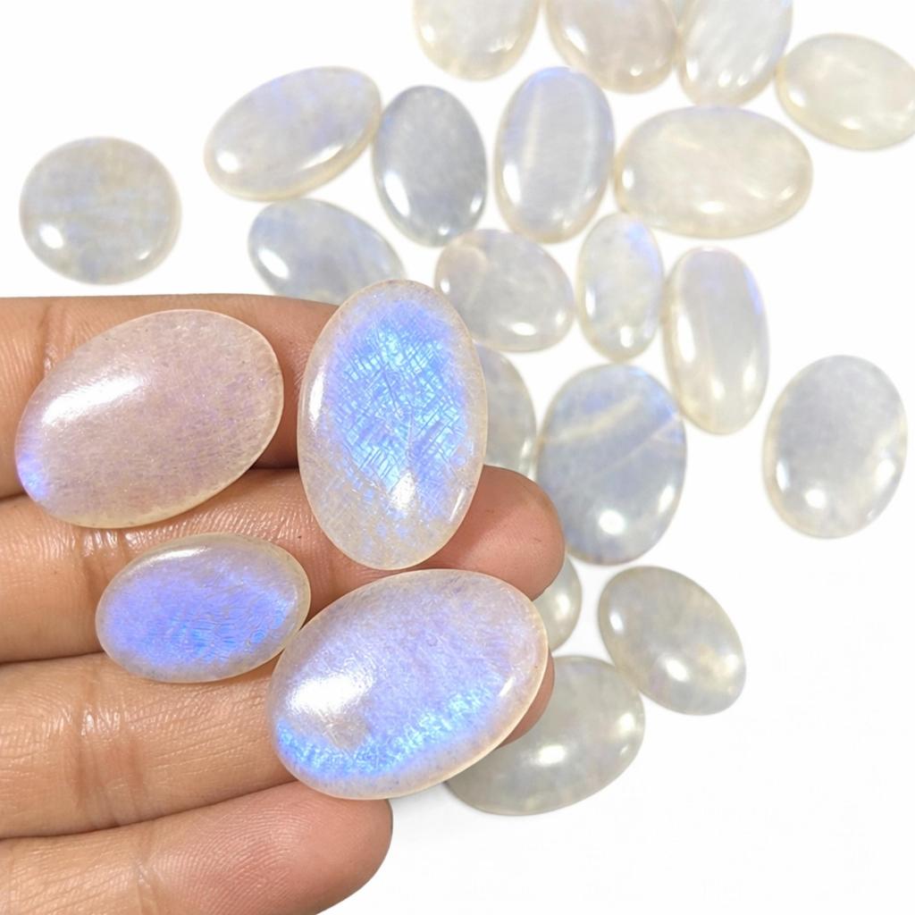 Rainbow Moonstone Oval Cabochons – Natural White Rainbow Moonstone Gemstone for Jewelry Making
