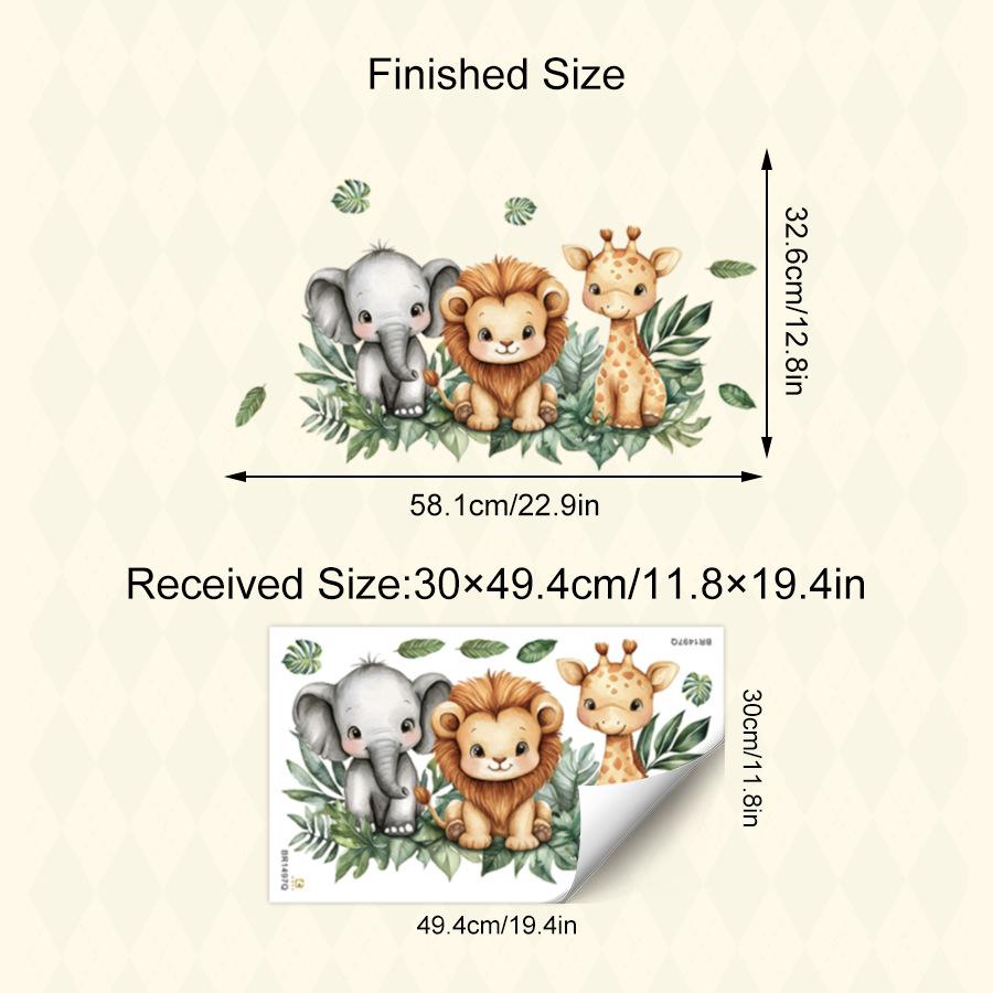 Jungle Animal Cartoon Wall Stickers, Elephant Lion Giraffe Self-Adhesive Decor for Bedroom Living Room Home Decoration