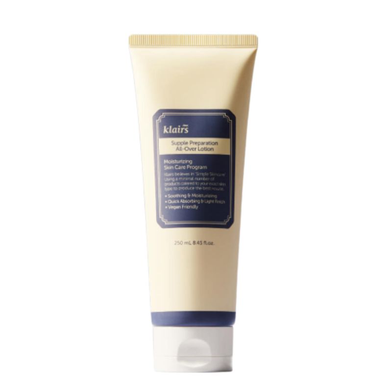 Dear, Klairs Supple Preparation All-Over Lotion is a lightweight yet deeply moisturizing lotion designed for both face and body care. The gentle formula provides long-lasting hydration while helping to soothe and balance sensitive skin. Enriched with nourishing botanical extracts and moisturizing ingredients, it absorbs quickly without leaving a sticky residue. Perfect for daily use to keep skin soft, smooth, and comfortably hydrated.