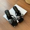 High heels women's cool slippers summer wear crystal sandals thick heel widened large size women's shoes