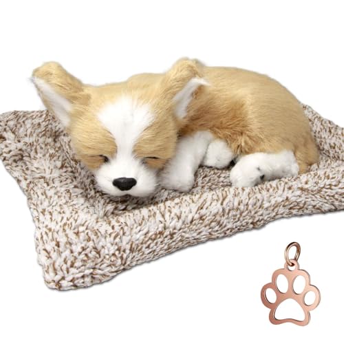 TATOTTE Hund Genähte Wickeldecke, Realistische Schlafender Hund Figur mit Aktivkohle, Beruhigende Dekoration, Inklusive Mini Pfotenabdruck Anhänger (Chihuahua CR K)