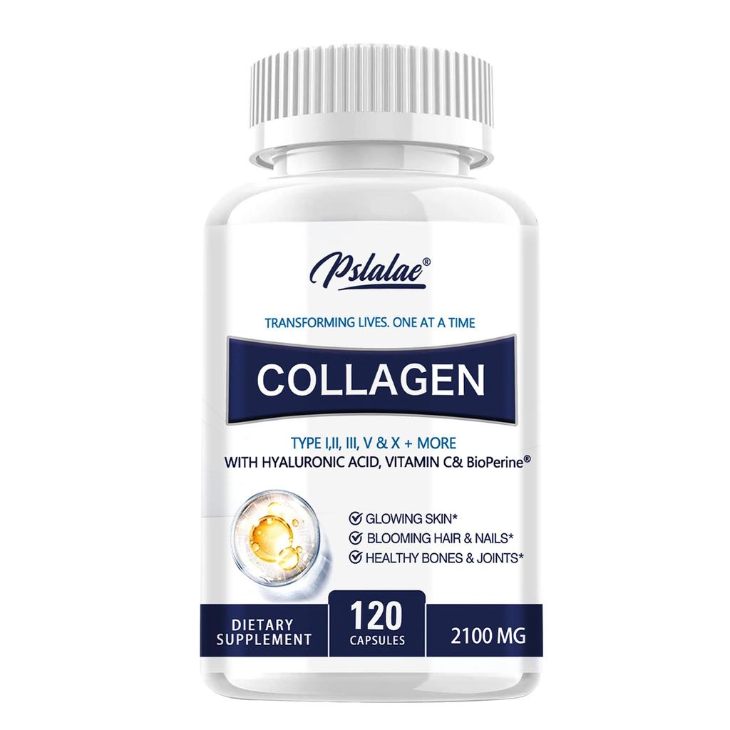 Premium Collagen Pills for Women - 120 Capsules, 2100 mg Grass Fed Collagen Supplements (Type I, II, III, V, X) + Vitamin C, Anti-Aging, Skin, Hair