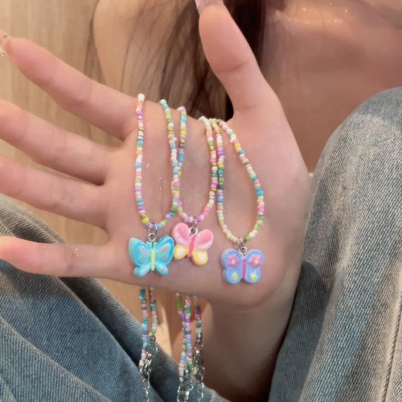 Verschiedene Mädchen farbige Schmetterling Perlenkette weiblich süß Kinder Sommer niedlich Cartoon Schlüsselbein Kette Trend