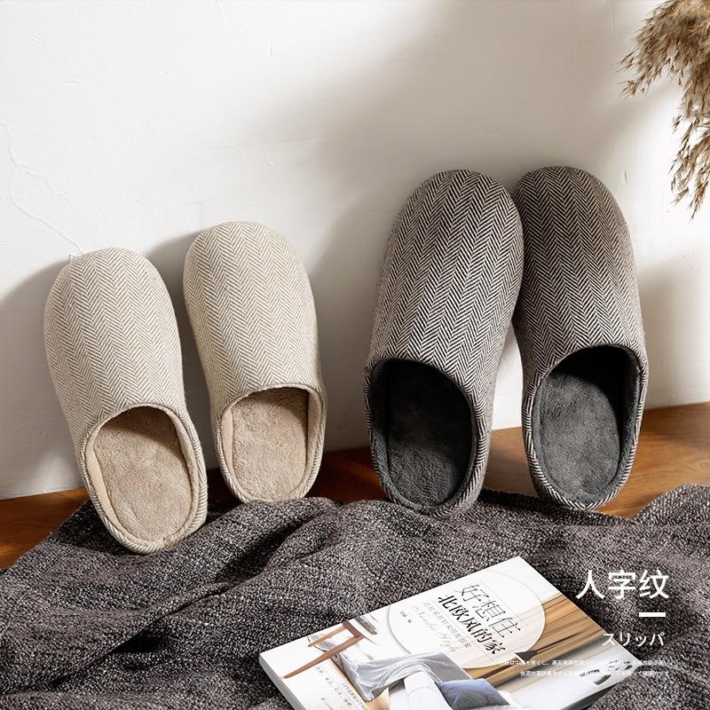 Japanese autumn and winter new plain home indoor wooden floor non-slip men and women couple wool warm cotton slippers