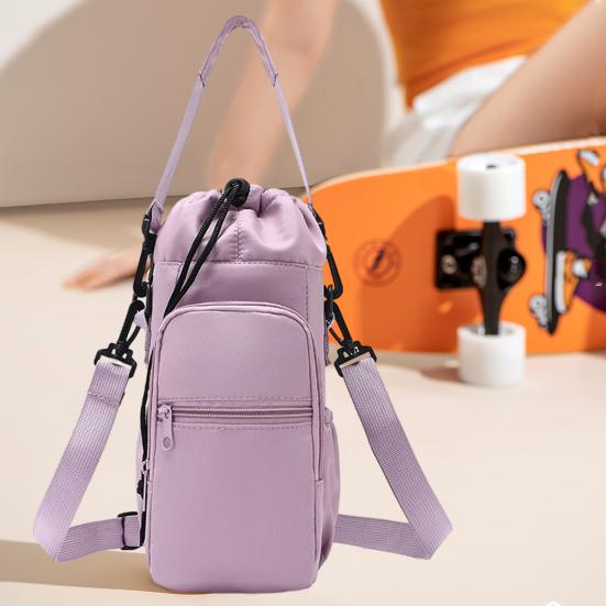 Isolierte Wasserflaschen-Schlingentasche Verstellbarer Riemen Kordelzug Flaschentasche für Wandern Fitnessstudio Reisen Mehrere Taschen Flaschentasche für Handy Schlüssel