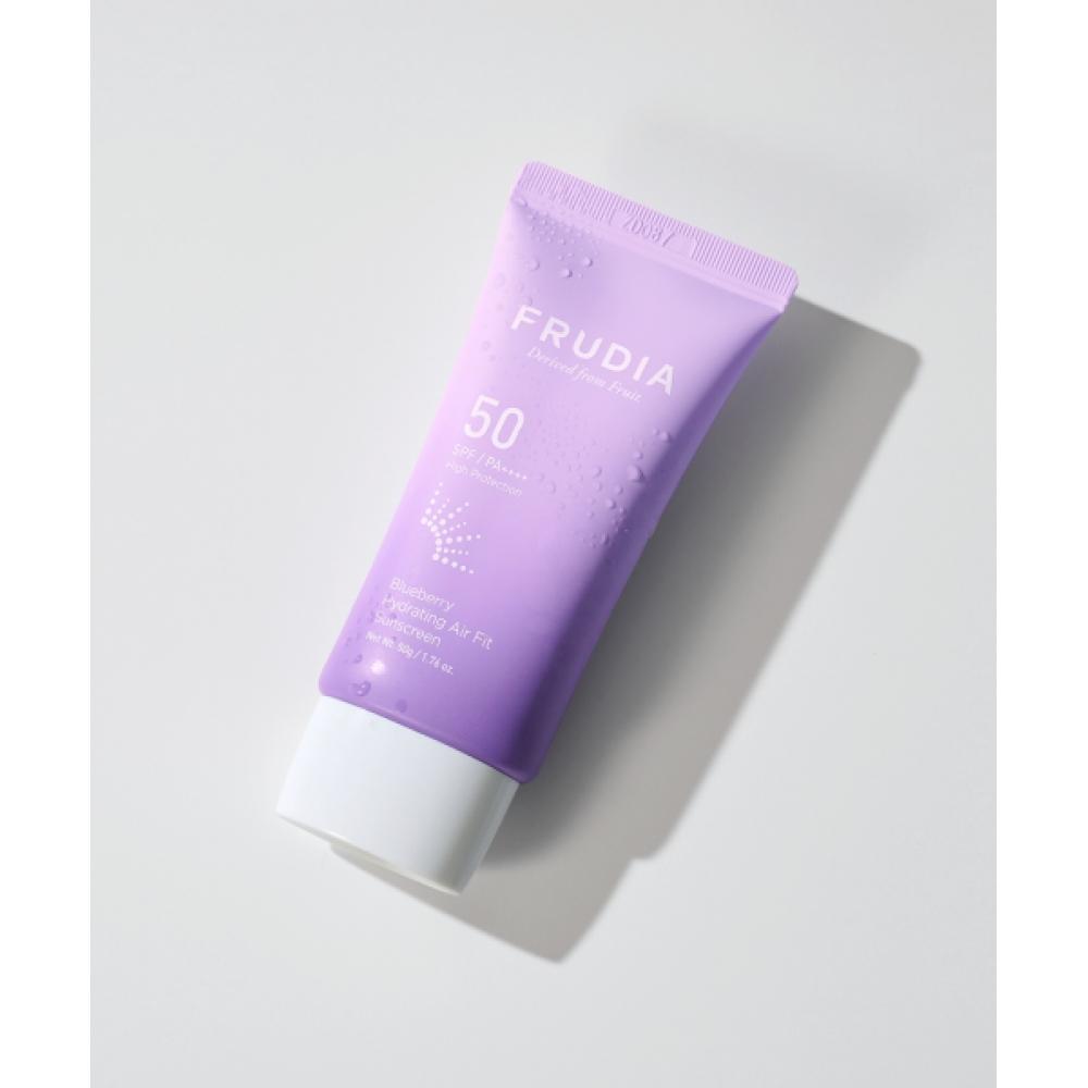 FRUDIA Blaubeer Feuchtigkeitsspendende Airfit Sonnencreme 50ml ist eine Sonnencreme mit LSF 50+ / LSF-Bewertung, die wie Luft auf der Haut haftet und sie mit Feuchtigkeit versorgt.. Diese Sonnencreme enthält essenzielle Inhaltsstoffe, die die Haut beruhigen und Feuchtigkeitsschutz bieten, selbst bei Sonneneinstrahlung.. Es lässt sich geschmeidig ohne Klebrigkeit auftragen und bietet ein ausgezeichnetes Benutzererlebnis.