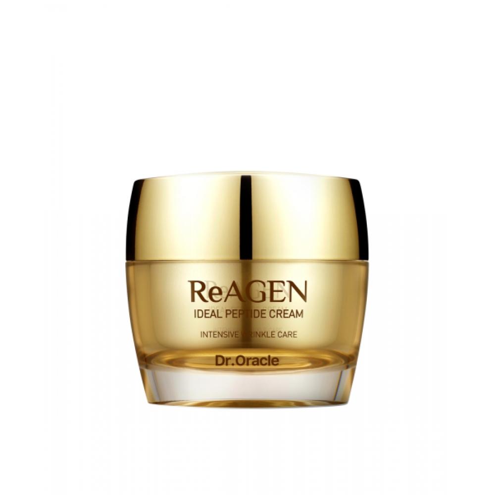DR.ORACLE ReAGEN Ideal Peptide Cream 50ml is an anti-wrinkle functional cream that contains adenosine, edelweiss stem cell culture fluid, and various peptide components. This product is effective in brightening the skin, improving elasticity, providing hydration, and soothing the skin. Notably, the formulation includes Laminaria (seaweed extract) to give the skin radiance and moisture. It aids in wrinkle improvement and skin tone enhancement, making it especially recommended for mature skin. By applying it at night, you can see improvements in wrinkles and skin tone by morning.