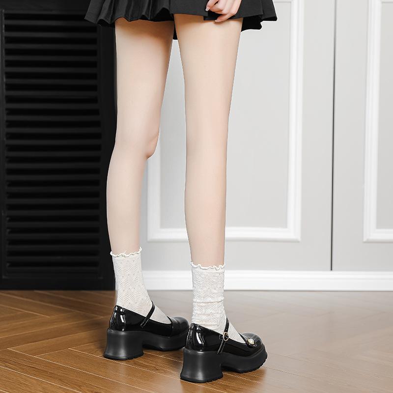Mode Japanische Einzelne Schuhe Kleine Lederschuhe Damen Erhöhte Dicksohlige Hochhackige Flachmündige Ein-Wort-Schnalle mit Perlenzier Mary